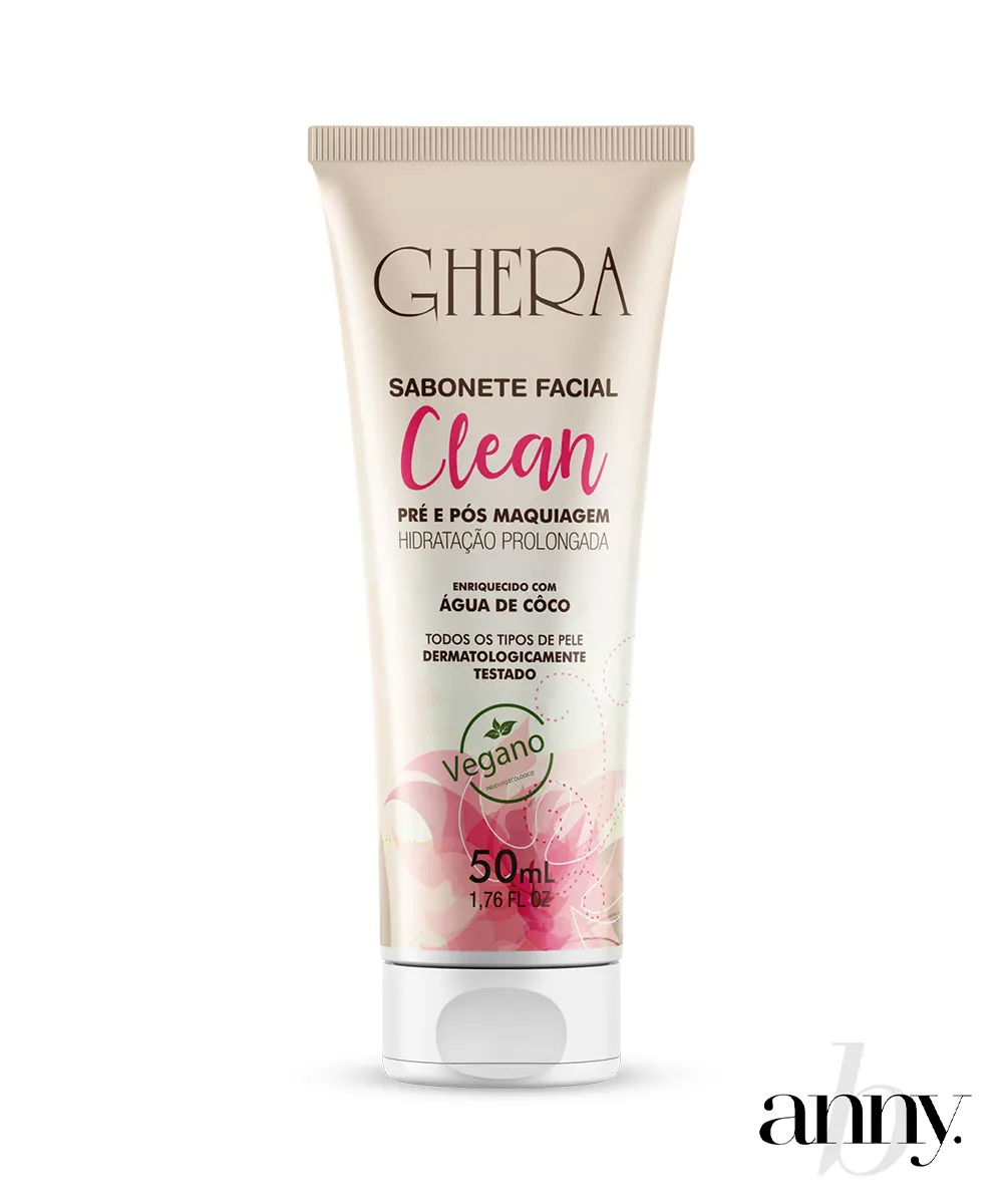 O Sabonete Facial Clean Ghera 50ml limpa profundamente a pele, ao mesmo tempo que hidrata com o poder natural da água de coco. Essa combinação é perfeita para remover impurezas e maquiagem, sem causar ressecamento.